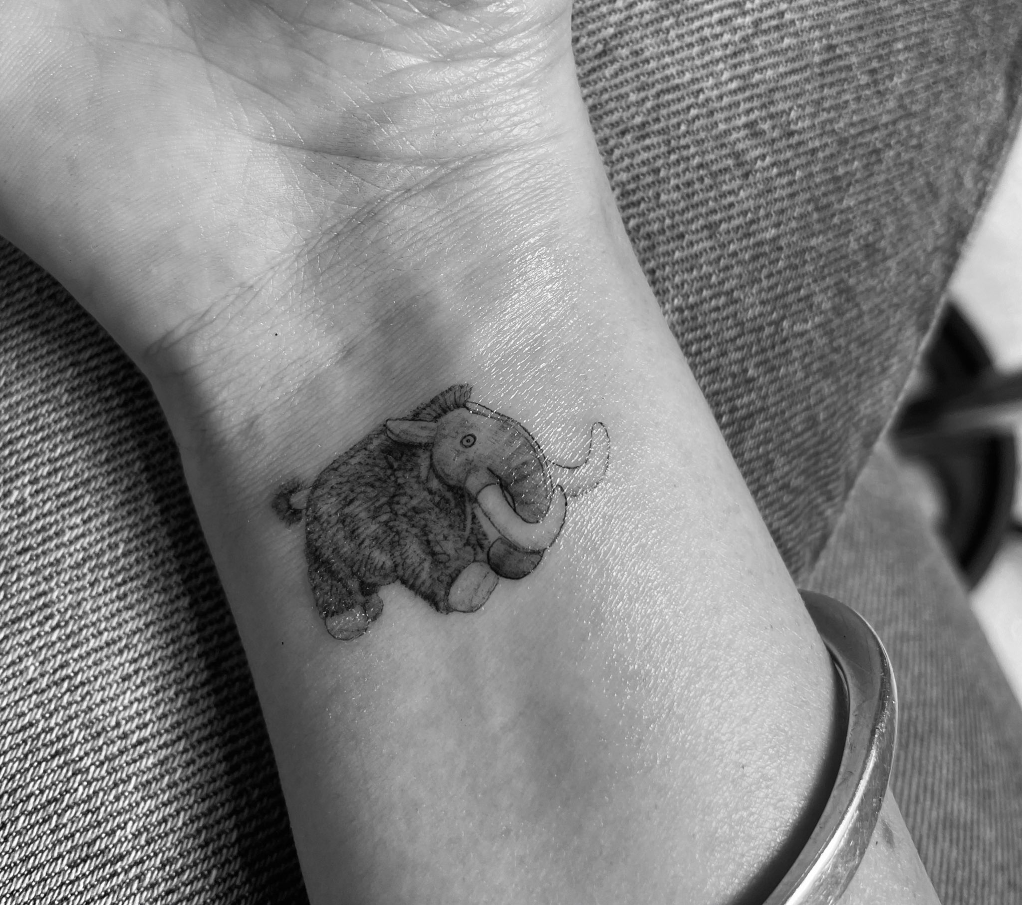 Holly Swan Wooly Mammoth For The Very Tough Charlie Finearttattoouk Customtattoo Mammothtattoo Woolymammoth Mammoth Woolymammothtattoo Animaltattoos Blackandgreytattoo Blackandgrey Iceagetattoo Iceage Tattoo Tattoos Tattooartist
